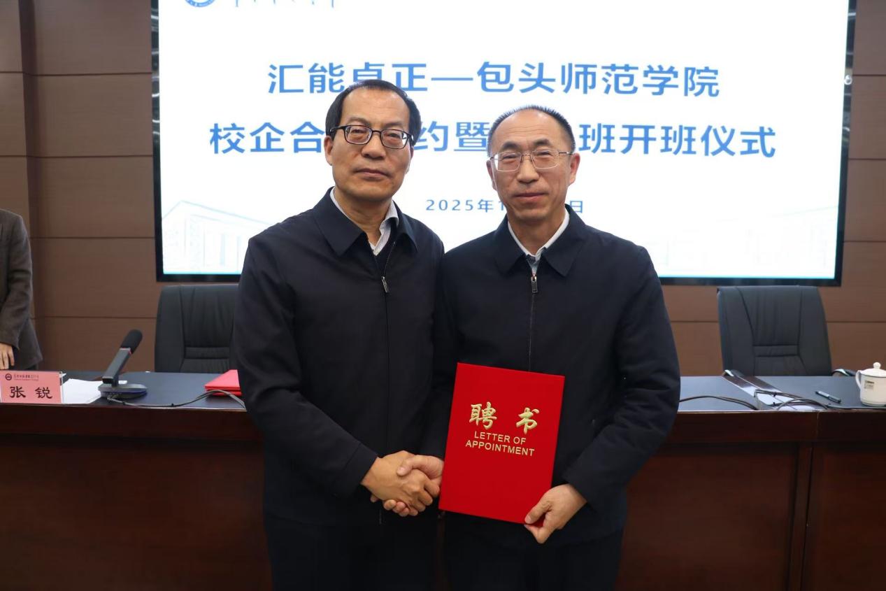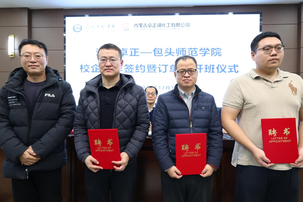 2025年12月19日,我校与汇能卓正校企合作签约暨“订单班”开班仪式在图书馆会议厅举行,内蒙古卓正煤化工有限公司总经理张建军一行5人,校党委委员、副校长马占飞,教务处、招生就业处、对外交流与合作中心负责人,化学学院班子成员、系主任、班主任、订单班学生、学生代表参加了会议。