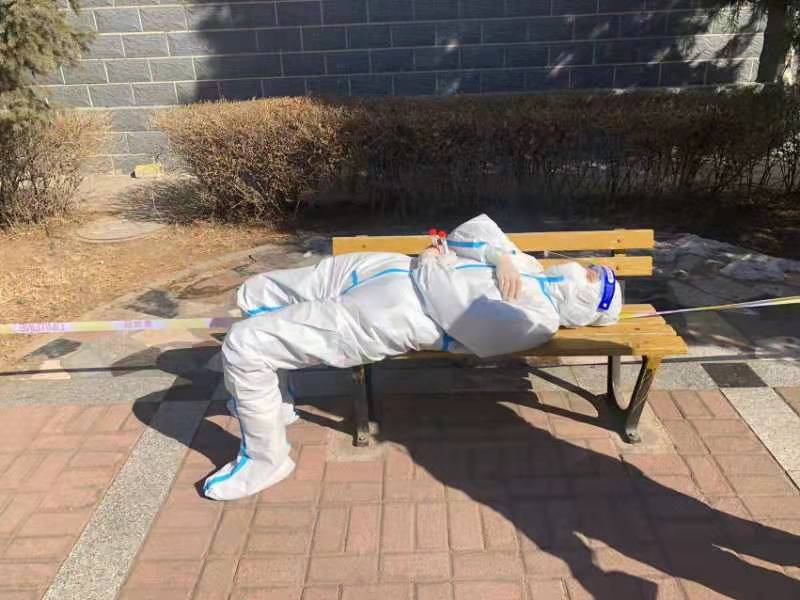 青年人初心不改,才能将艰难困苦转换为成长的养料。初春的内蒙古,天气依然寒冷,零下十几度的天气,对于每一位奋斗在一线的工作人员来说都是不小的考验。2019化本班李天琦:“第一轮核酸检测是在户外进行,我们凌晨就要集合,气温非常低,凛冽的寒风从临时搭建的帐篷的角角落落冲进来。长时间在户外工作,从小腿到脚都冻麻了。”