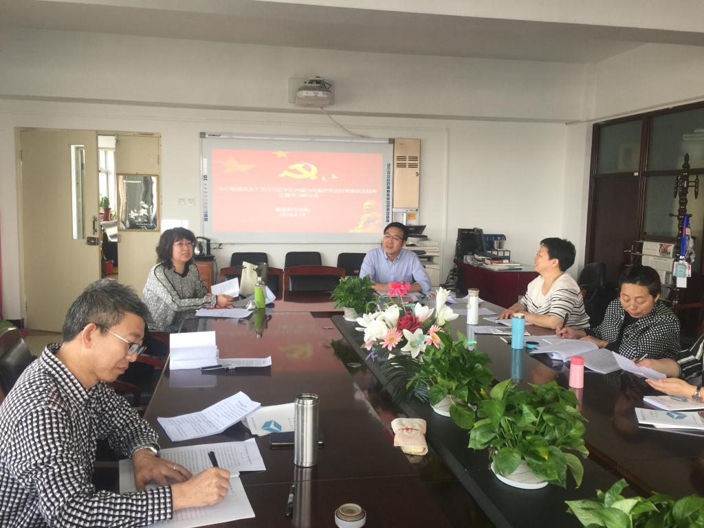 4月19日下午,在前期安排自学的基础上,教育科学学院在博学楼731会议室组织中心组成员集体重温学习了习近平在内蒙古代表团审议时的重要讲话精神以及习近平在第13届全国人民代表大会第一次会议上的讲话,并进行了研讨交流,学习研讨会由教育科学学院党总支书记张岫峰主持。