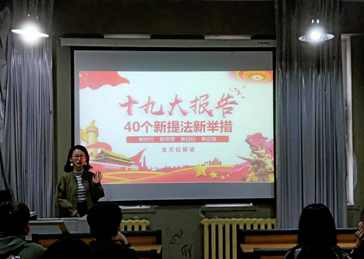 张萌同学较全面的解读了十九大报告内容。她以大会的主题“不忘初心,牢记使命,高举中国特色社会主义伟大旗帜开始,到决胜全面建成小康社会,夺取新时代中国特色社会主义伟大胜利,为实现中华民族伟大复兴的中国梦不懈奋斗”为内容做了详细的讲解,同时多角度对十九大的重大意义作了阐述。