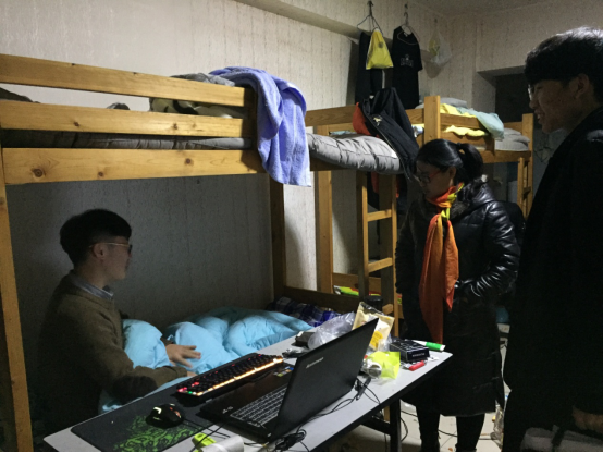 当天晚上,姜老师还逐一走访了杰普基地学生公寓。检查中发现大部分宿舍用电安全合理、卫生状况良好。但个别宿舍存在用电安全隐患,宿舍卫生较差,不及时清理垃圾桶等问题。姜老师对相关宿舍进行了安全教育,提醒同学们注意宿舍卫生,认真对待自己的身体健康,防止流行性感冒的发生与传染。