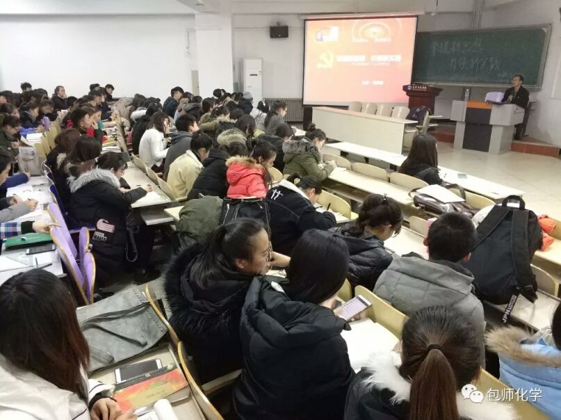 根据学校党委关于学习宣传贯彻党的十九大精神的通知要求,化学学院党总支于12月28日下午和晚上,分别对全体教师和学生党员、入党积极分子、学生骨干进行了两场“党的十九大精神进院系学习宣讲报告会”。