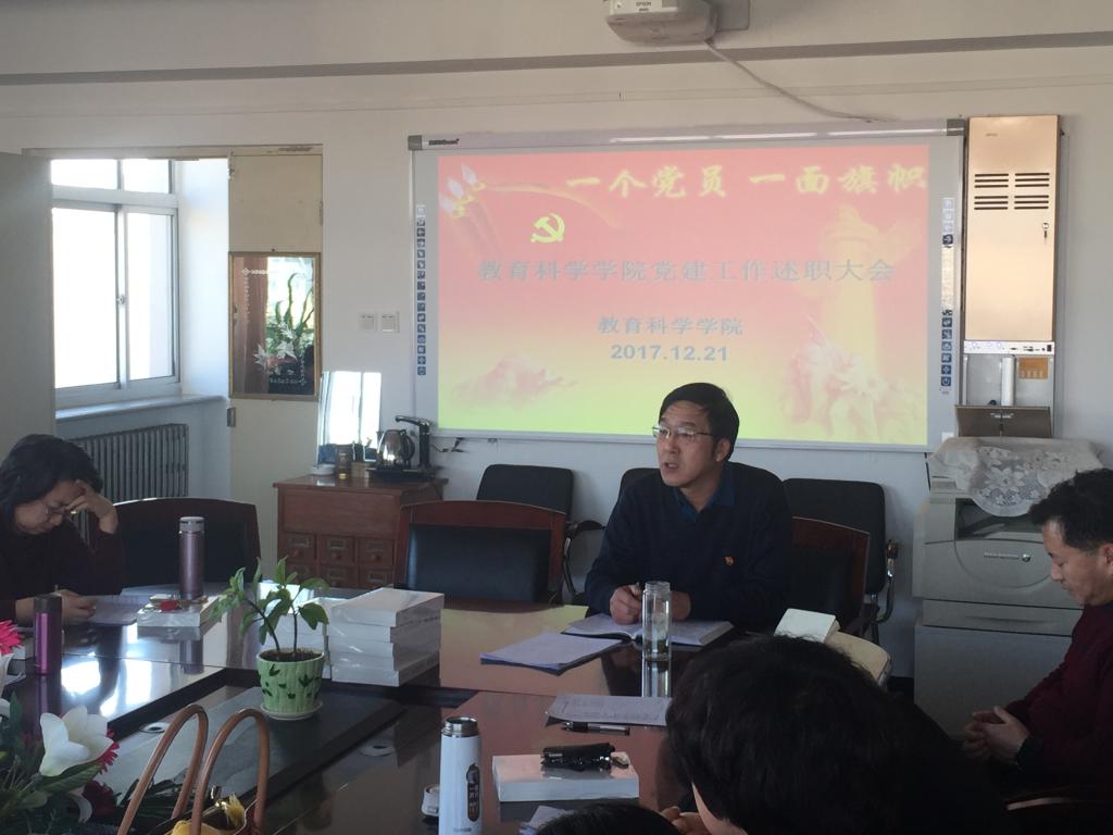 12月21日,教育科学学院党总支在博学楼731会议室举行党支部书记党建工作述职大会。会议由教育科学学院党总支书记张岫峰主持,学校纪委监察审计处副处长张迎峰受学校委派代表学校领导到会指导,教育科学学院全体教职工党员及部分学生党员代表参加了本次大会。