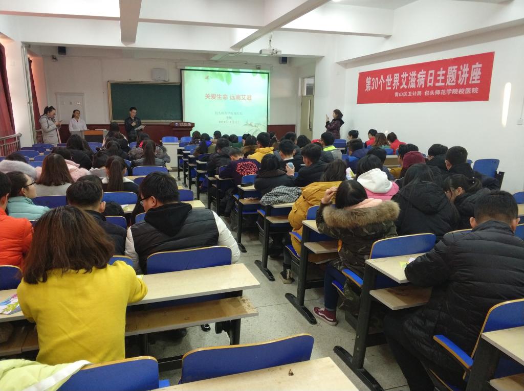 李敏医生围绕2017年世界艾滋病日活动主题展开了详细论述,从艾滋病的致病机理、传播途径及预防三方面向大家介绍了艾滋病的相关知识,并利用大量的真实病例和图片引起大家对艾滋病的重视,引导树立性健康意识,呼吁珍爱生命,远离艾滋。最后,化学学院青年志愿者协会对此次讲座做了总结,并对包头市卫计局及校医院工作人员的到来表示感谢。