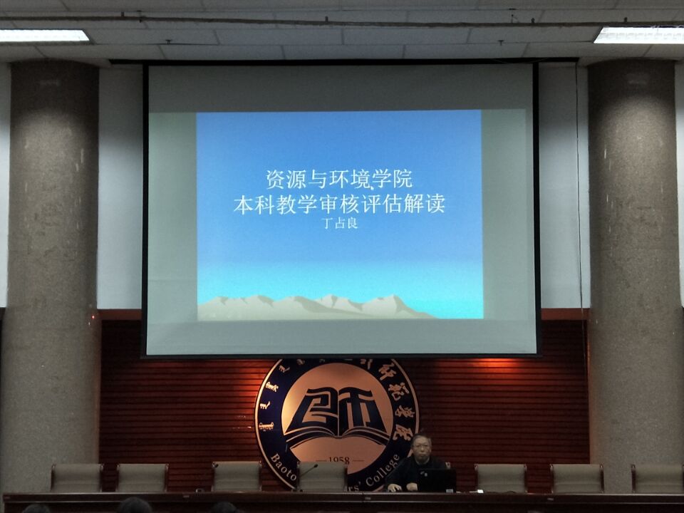 11月29日晚,资源与环境学院在博学楼学术报告厅召开本科教学工作审核评估应知应会培训会。学院党总支书记李建军、院长宁小莉、副院长丁占良、学生工作领导小组全体成员以及全体学生参加了本次动员大会。会议由李建军同志主持。