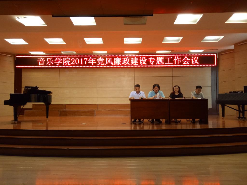 5月26日,音乐学院召开2017年党风廉政建设专题工作会议,学院全体党员和环节干部参加了会议。会议由音乐学院党总支书记李红梅主持。