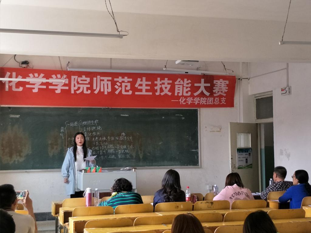 4月6日,化学学院举办师范生技能讲课竞赛。谷中明、赵军、李云、高俊芳、丁永萍等五位教师担任了本次大赛评委,16名参赛学生参加了技能讲课大赛。