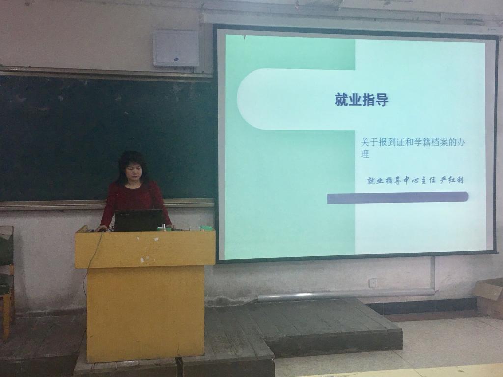 3月16日上午,招生就业处就业指导中心主任严红利为毕业班学生讲解了报到证和学籍档案事宜,包括报到证的作用、办理、改派、未就业学生报到证的办理和学籍档案的转接等,使同学们意识到了报到证和学籍档案的重要性,并了解了报到证办理和档案转接的流程,毕业生们纷纷表示一定积极配合报到证的办理和档案转接信息的核对。