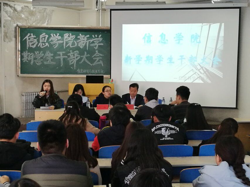 3月9日下午,信息科学与技术学院在博学楼西606教室召开新学期学生干部大会。副书记副院长郭宏升老师、辅导员高婷老师、全体学生会成员和大一、二、三年级的班级干部参加了会议。会议由学工办主任丁坤老师主持。