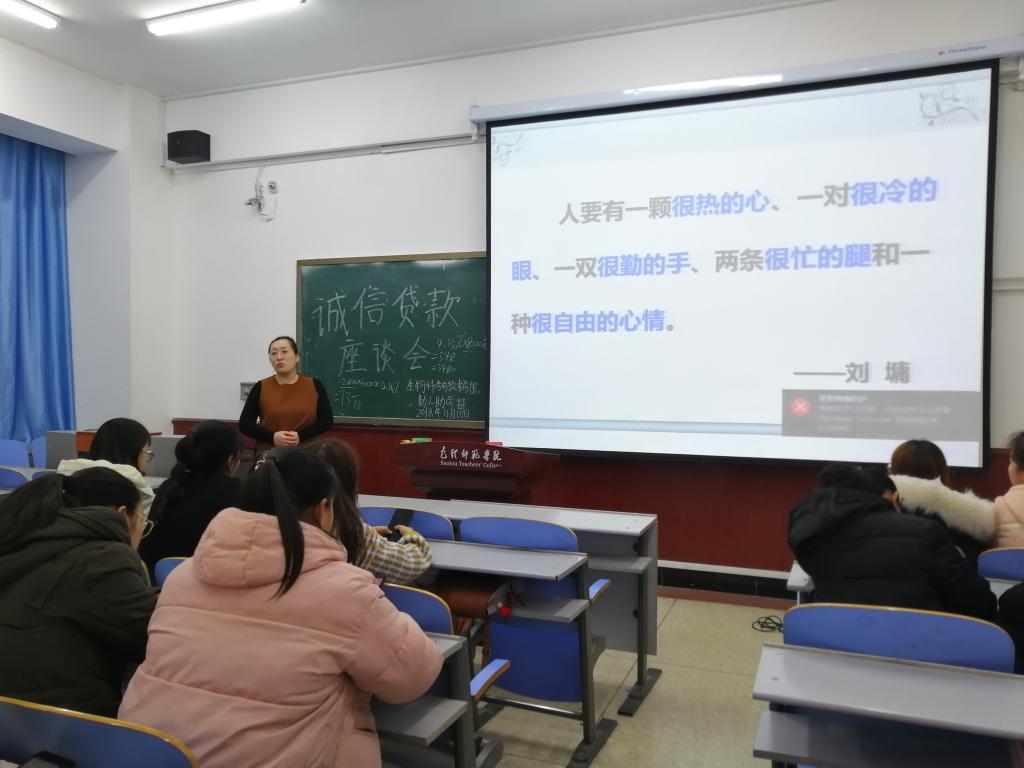 赵老师围绕生源地助学贷款的期限、利率及诚信还贷等问题进行了详细的介绍,并呼吁同学们要把对国家和学校的感激之情转化为刻苦学习、努力工作的强大动力,严格履行贷款合同,按照相关规定积极还款,以实际行动回报国家和学校对自己的支持和帮助。最后,赵老师希望大家无论在今后的工作还是生活中坚持诚信为本、以诚立身,不断提升诚信意识。