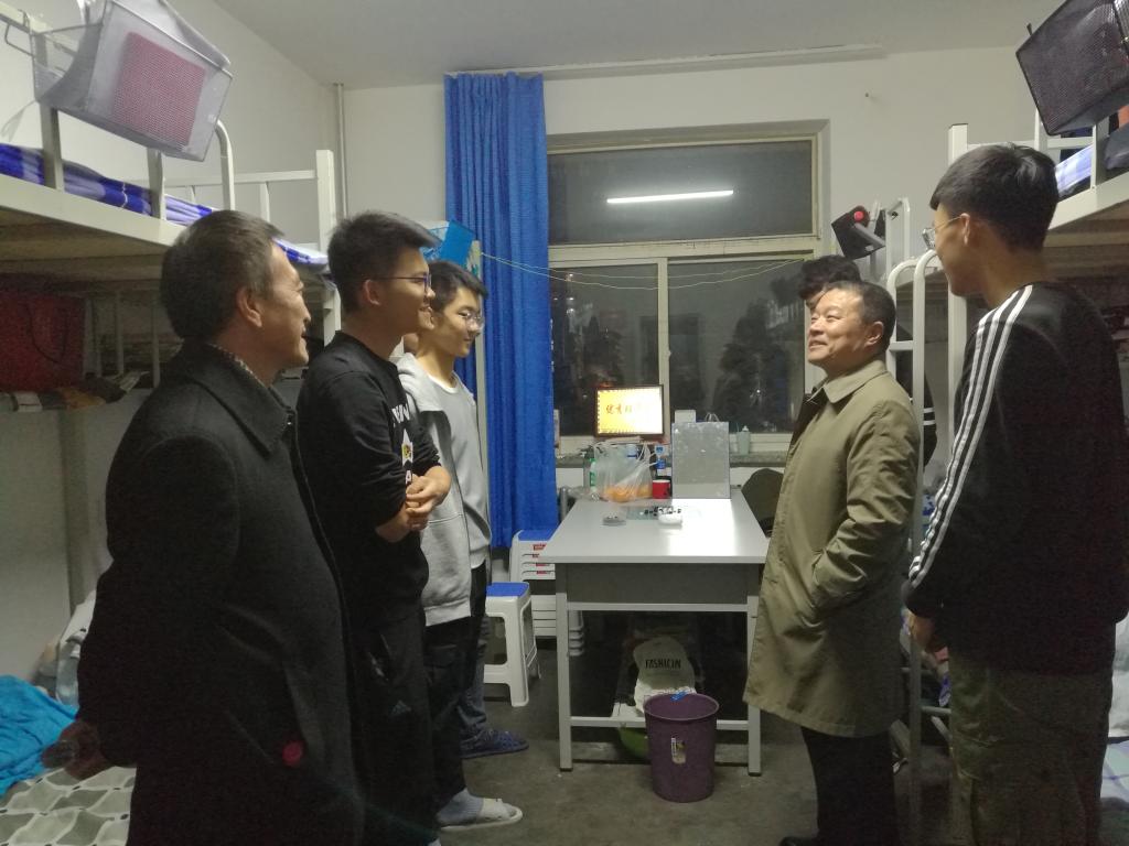 11月14日晚,学校党委书记王永明到学生公寓5号楼经管学院宿舍看望学生。在2018级学生宿舍,王书记详细询问了同学们的学习和生活状况,与同学们进行了亲切的交流。他勉励同学们抓紧大学的美好时光,自觉把自己的前途命运与实现中华民族伟大复兴的中国梦结合起来,刻苦学习,勤于锻炼,不断进步。他希望同学们走出宿舍,走进图书馆和教室,多读书,勤学习,善思考。要合理安排好自己的课余时间,在图书馆多学习一会儿,晚回一会儿宿舍,在学习上多投一些精力和时间,在校期间多储备知识,多锻炼自己的综合素质和能力,珍惜大好时光,不要辜负美好青春年华。只有这样,将来才能有所作为。