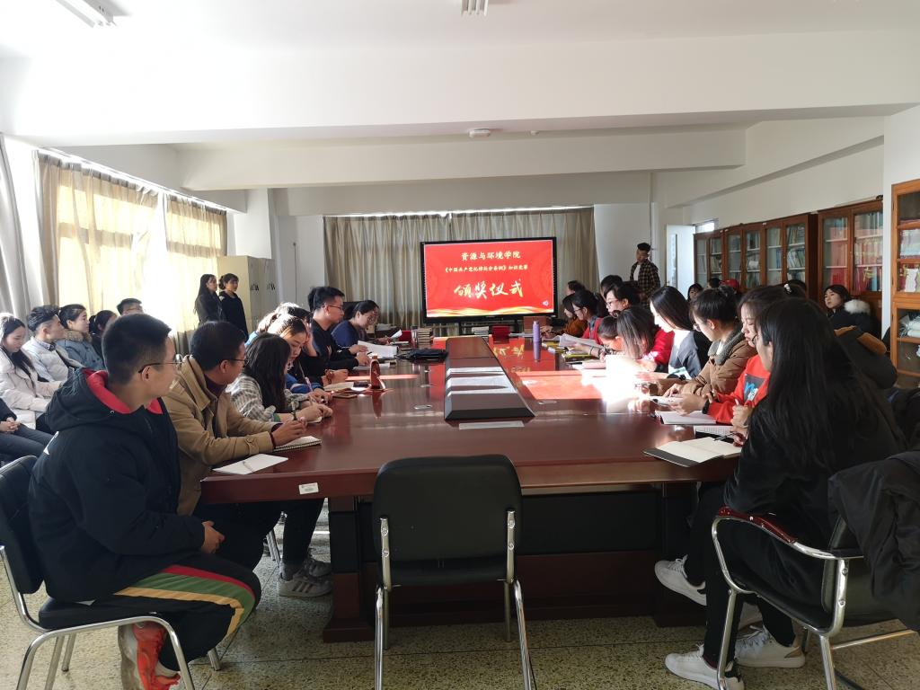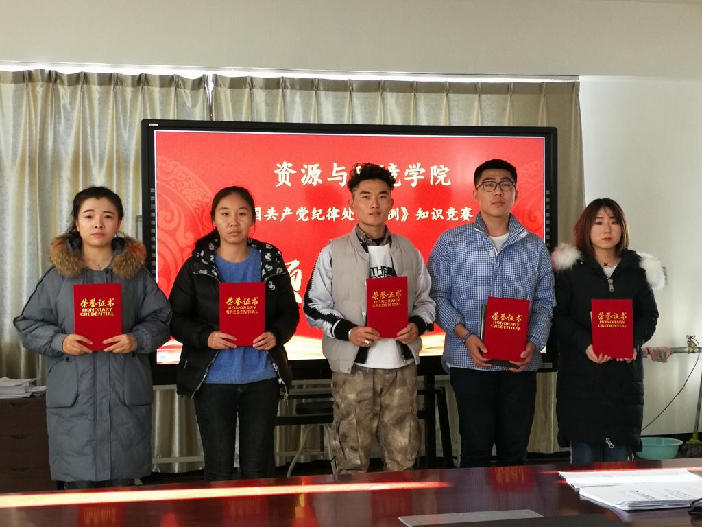 11月15日,资源与环境学院党总支举办《党的民族宗教政策理论知识》(以下简称《理论知识》)和《中国共产党纪律处分条例》(以下简称《条例》)应知应会竞赛颁奖仪式。学院党总支成员、各党支部委员和学生党员及部分学生代表参加了会议,颁奖仪式由党总支委员副院长朱丽主持。