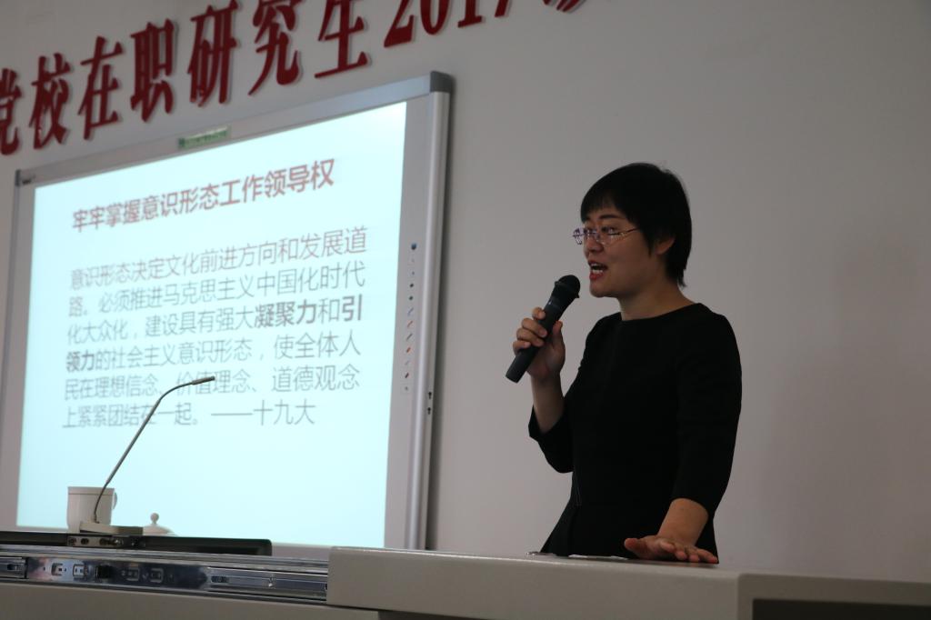 上午,鄂尔多斯市委党校苏利英老师为大家作了主题为“牢牢把握意识形态工作领导权”的讲座。她从意识形态工作的含义和定位谈起,引用历届中央领导关于意识形态的重要论述,特别是习近平总书记关于意识形态极端重要性的论述,结合丰富事例,充分阐述了开展意识形态工作的重大意义,并结合意识形态工作需要遵循的要理,详细讲解了把握意识形态领导权的理念创新、理论创新、手段创新和基层创新四种方法。最后,苏老师引用著名学者崔卫平教授的话“你所站立的地方,正是你的中国。你是什么,中国便是什么。你有光明,中国便不黑暗”与大家共勉,为讲座画上了圆满的句号。