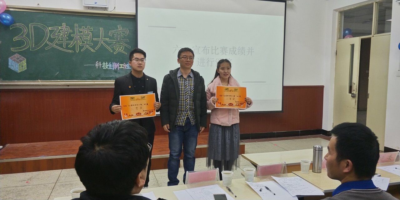 为了让同学们更加深入地了解3D打印技术,培养Solidworks软件使用人才,物理科学与技术学院科技创新创业工作室组织举办了“3D建模创新大赛”。经过紧张的宣传、筹备及初赛环节,11月22日,决赛在博学楼正式打响。中关村软件园卢秀荣老师,物理学院副院长郭凯敏老师,专任教师王凯、吴鸿业、张雨彤老师担任此次决赛的评委。