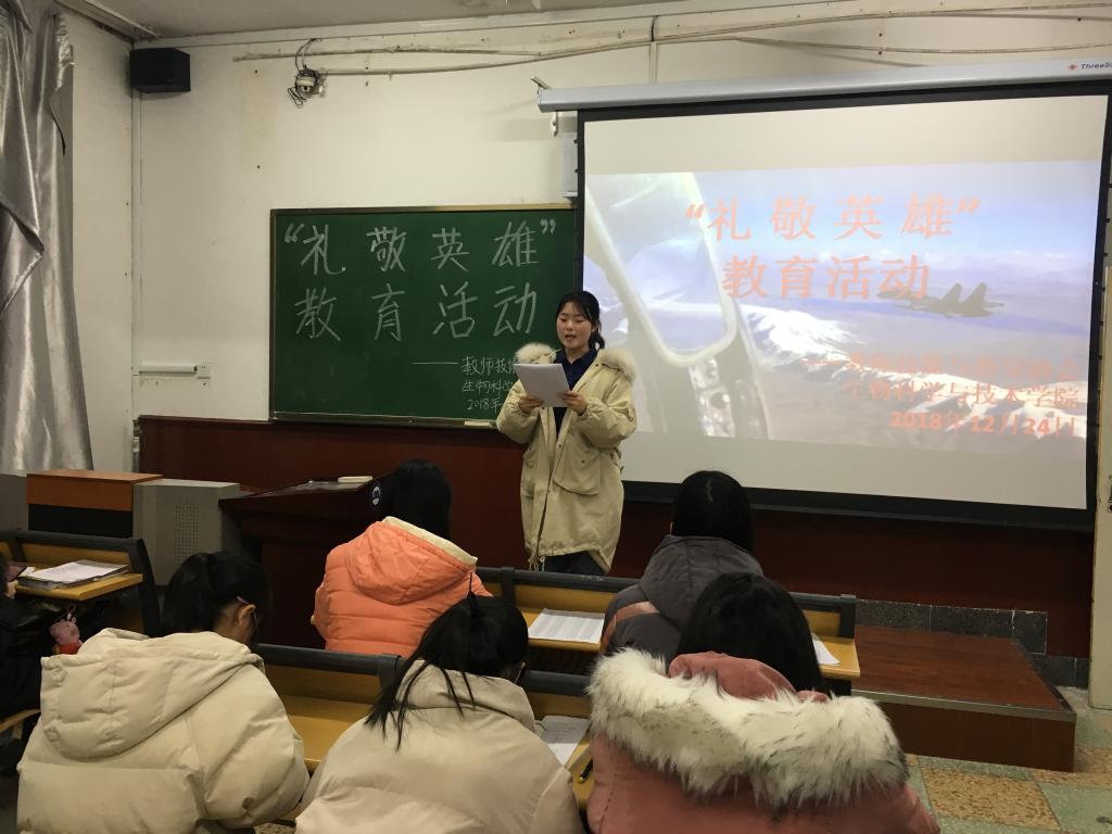 为了更好地传承英雄精神,培育同学们的爱国主义情怀,生物科学与技术学院教师技能指导协会于12月23日晚七点在齐志楼404教室举办了“礼敬英雄”教育活动。同学们积极参与,以不同方式表达了自己对英雄的敬仰。