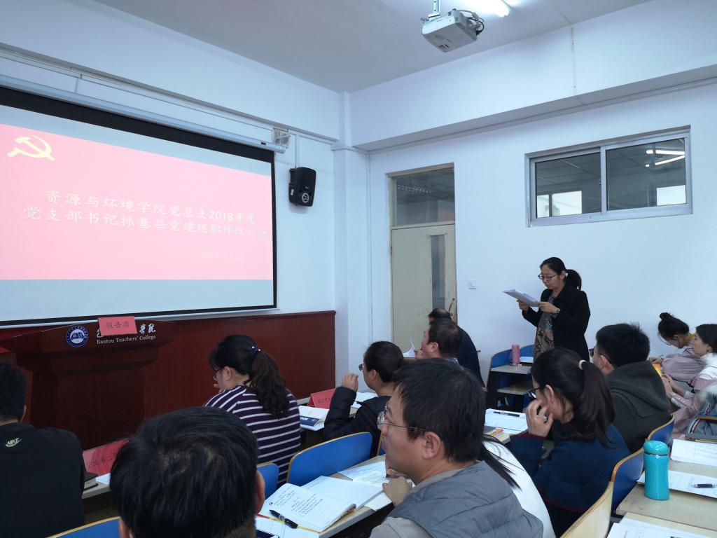 12月20日,资源与环境学院党总支,在博西604以党总支扩大会议的形式组织开展了2018年度党支部书记抓党建述职评议。全院49名党员参加了会议,会议由党总支书记李建军同志主持。