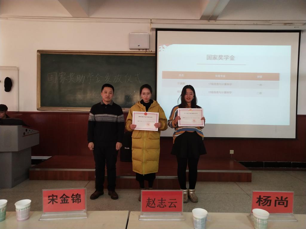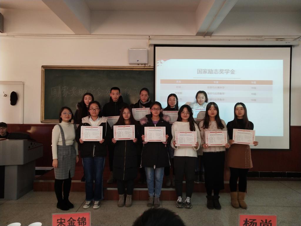 12月28日下午,数学科学学院在博学楼500举办了国家奖助学金发放仪式。