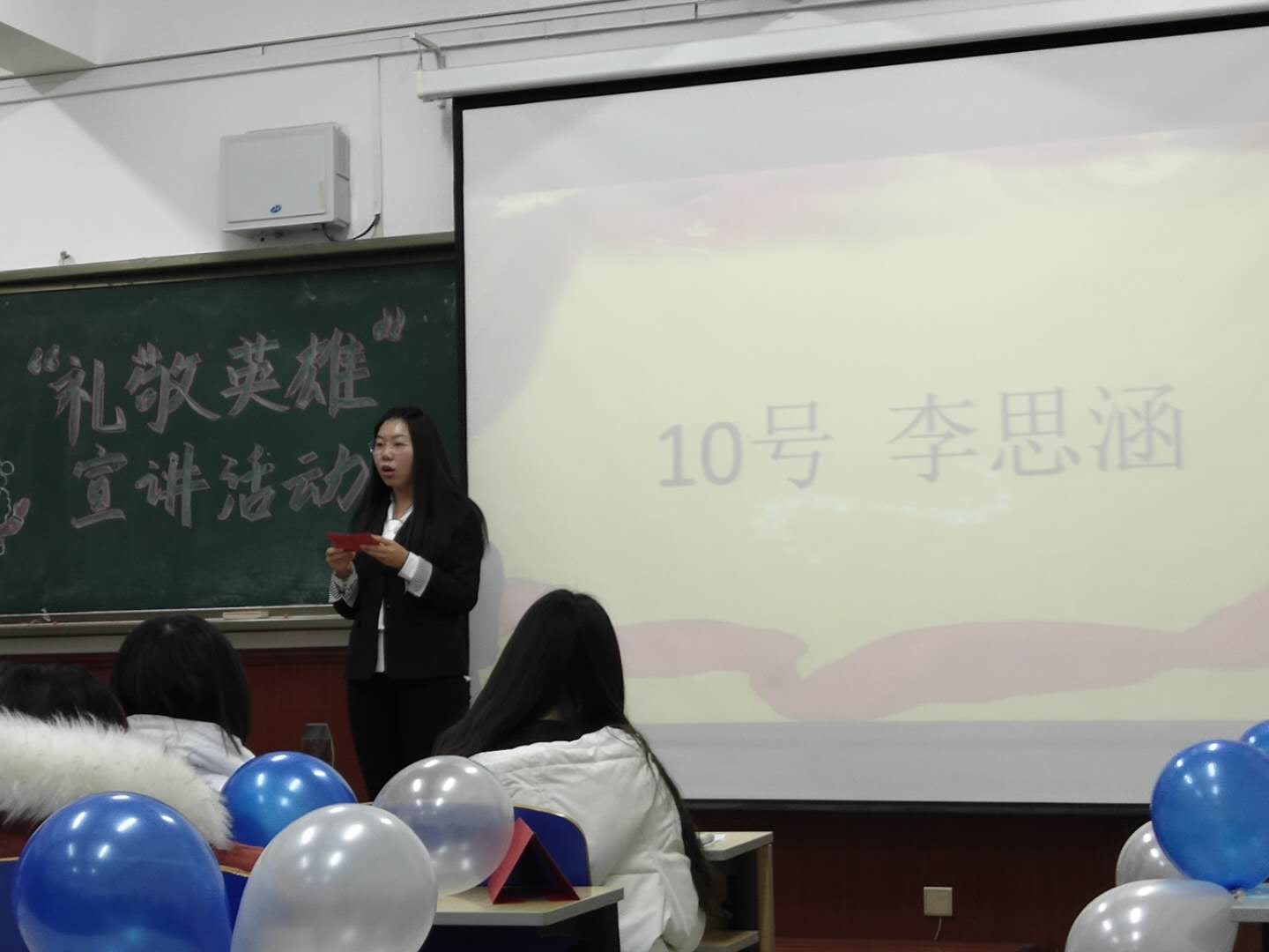 本次活动得到各班同学积极响应,各班团支书代表班级参加比赛。宣讲过程中,各位参赛者情感丰富、表达自然流畅,或慷慨激昂、荡气回肠,或娓娓道来、韵味无穷,《英雄在身边》、《致敬英雄》、《爱国从礼敬英雄开始》等20个主题演讲深深地表达了大家对英雄的赞美和对红色先烈的追忆,激发了同学们的强烈共鸣,赢得了同学们的阵阵掌声,全场气氛庄严而热烈。最后,根据评委打分,评出了一、二、三等奖共六名同学并为他们颁发了奖品。