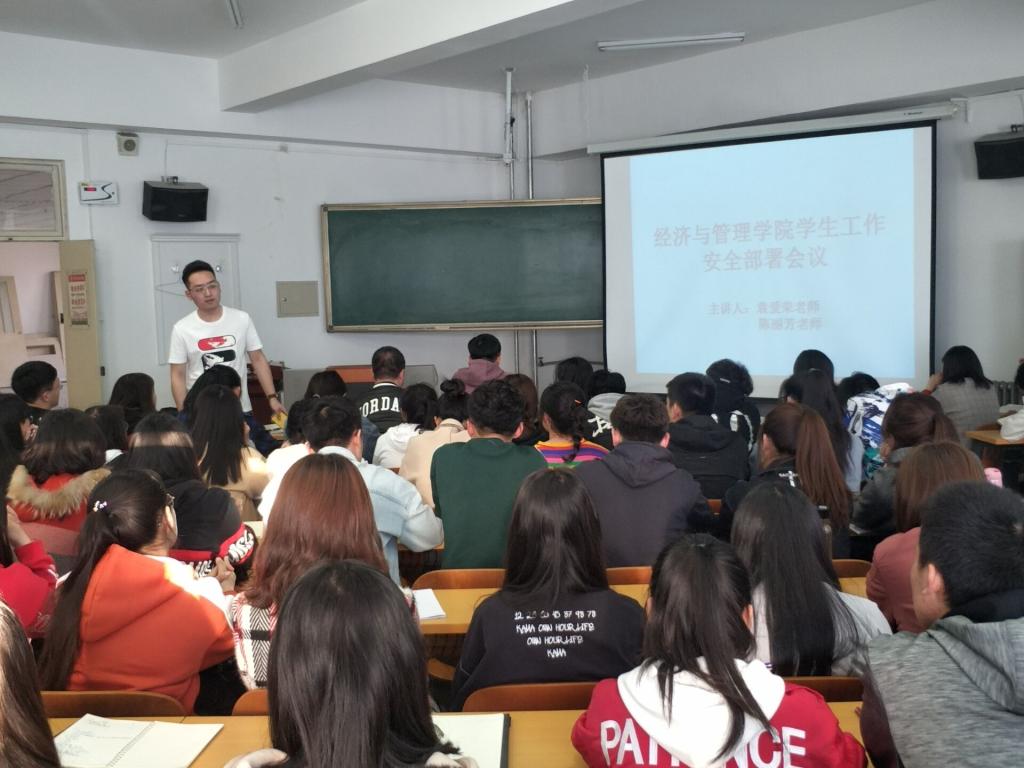 3月14日下午,经济与管理学院在博学楼东104召开学生工作安全部署会议。会议由辅导员陈丽芳主持,经管学院全体学生干部参会。