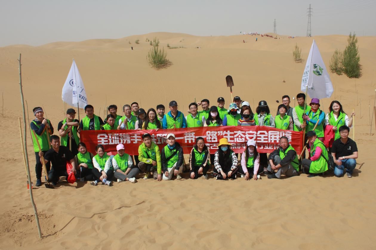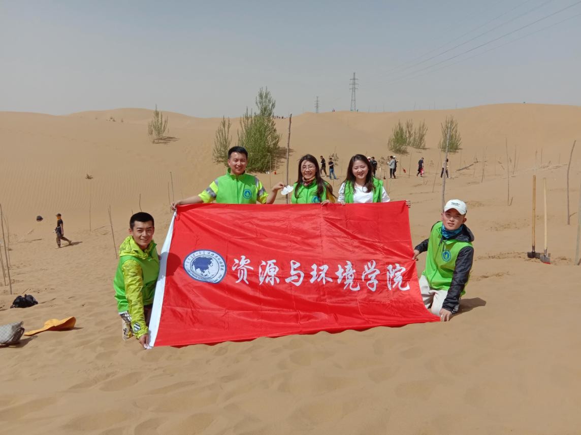 为积极响应习近平总书记提出的践行绿色发展新理念,加强生态环保合作,建设生态文明。4月21日,在内蒙古杭锦旗库布其沙漠亿利生态示范区“两山”理论实践创新基地,资源与环境学院宁小莉院长带领周海涛、陈燕春两名辅导员以及学院环保协会的同学参加了由内蒙古自治区政府生态环境厅、鄂尔多斯人民政府、杭锦旗人民政府联合亿利公益基金会、内蒙古环保科技行业协会、包头广电集团举办的全球携手共筑“一带一路”生态安全屏障——第50个世界地球日库布其全民植树活动。