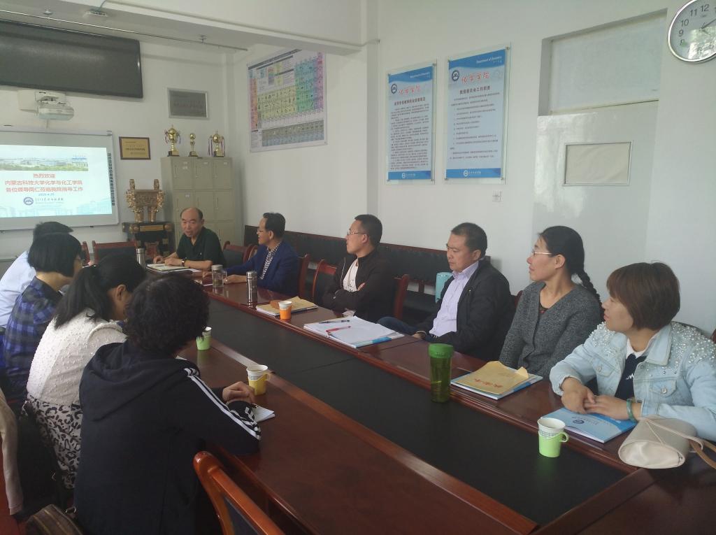 4月25日下午,内蒙古科技大学化学化工学院副院长李国祥教授一行四人莅临我校化学学院进行工作交流。化学学院党总支书记史继敏、院长魏兵和系主任、教学办主任、实验室负责人参加了交流会。