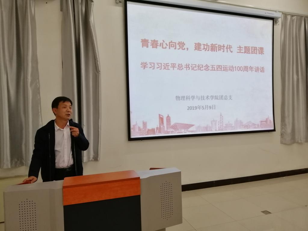 为深入学习贯彻习近平总书记五四讲话精神,5月9日,物理学院在新逸夫楼124召开“青春心向党,建功新时代”主题团课。党总支书记王飞全老师、团总支书记张锐老师以及物理学院18级全体同学到场参加。