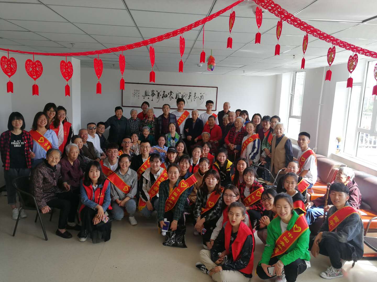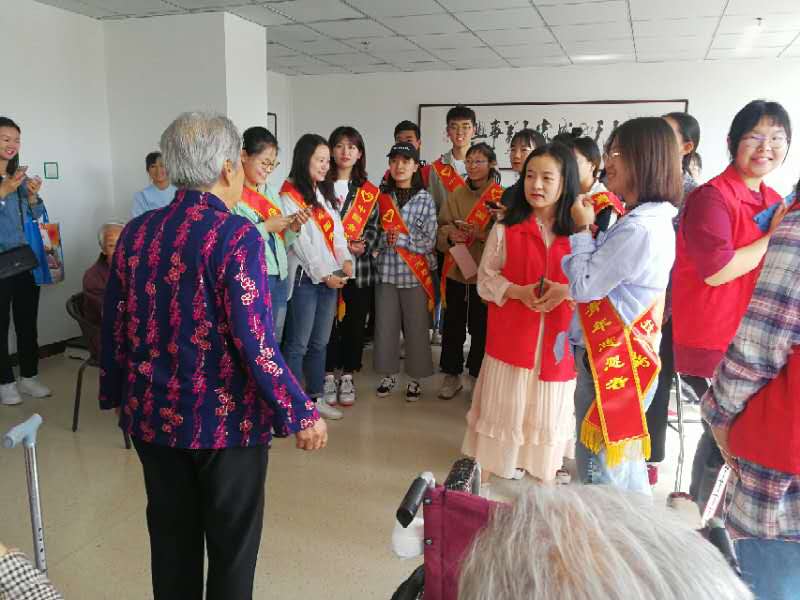 上午八点二十分,56名志愿者准时集合参加此次活动。到达振华老年服务中心后,在老年服务中心院长的带领下志愿者分批进行了义务活动,一部分志愿者打扫卫生,一部分陪伴老人聊天。最后大家一起聚集在活动室中,为服务中心的老人们表演了歌曲《感恩的心》和《父亲》,一位老奶奶情不自禁地带领大家一起合唱《世上只有妈妈好》和《东方红》,老奶奶与大家分享了现在的生活,鼓励学生们努力奋斗,好好学习。