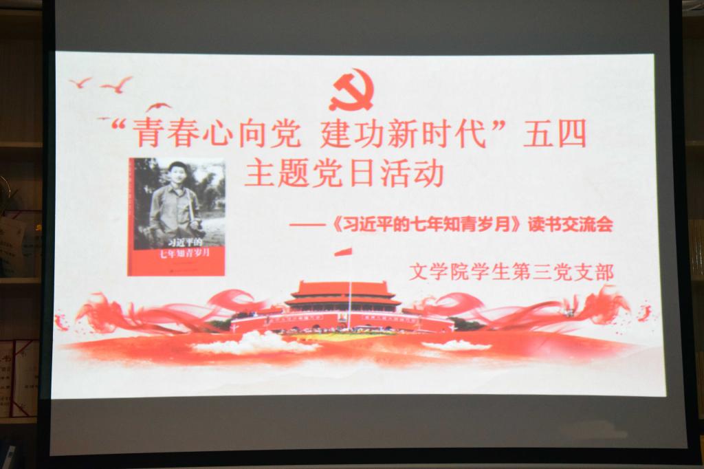 为帮助青年树立正确人生观、价值观,真正理解青年的责任与担当,文学院学生第三支部于5月14日下午在学院“党员之家”开展了“《习近平的七年知青岁月》读书交流活动”。本次党日活动由支部书记柴诗瑶主持,支部全体学生党员参加。