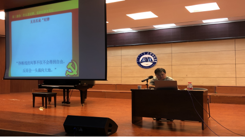 讲座围绕“不忘初心、牢记使命”主题,从“关于全面从严治党和反腐倡廉”、“《中国共产党廉洁自律准则》和《中国共产党纪律处分条例》”、“什么是纪律、党的纪律及其它”、“党的纪律的具体内容”和“如何遵守党的纪律”五部分展开,内容详实、条理清晰,信息量饱满,通过讲故事、亮数据、摆问题、提对策,让大家进一步了解了全面从严治党的发展历程,更加明确了党员的纪律要求,强化了全体教师课程思政的意识和在工作中积极践行、做到“爱党、信党和事党”的意识。
