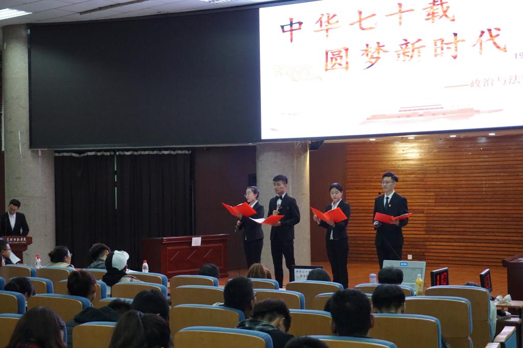 “辉煌七十载,昂扬新时代”主题诵读比赛作为历史文化学院迎接建国70周年系列活动之一,为全体同学提供了一个学习国家历史、了解国家发展历程的良好平台,也更加坚定了在场同学的爱国理想和信念。(历史文化学院)