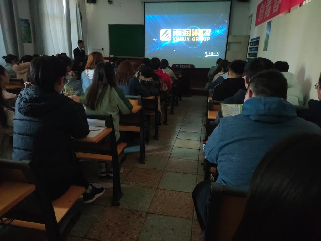 此次招聘会主要招收生物技术和人力资源管理专业毕业生。雨润集团通过播放宣传片、PPT展示、面对面交流等方式向同学们介绍公司概况、职业发展方向、人员需求及选择该集团的理由等。