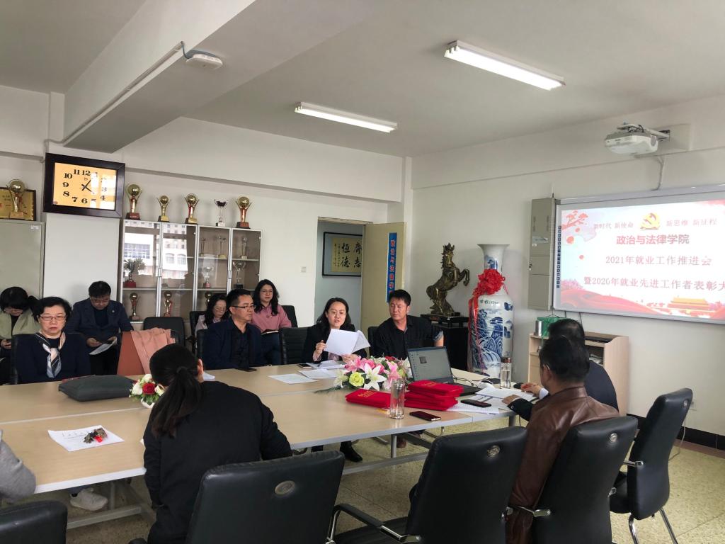 为贯彻落实全国2021届高校毕业生就业工作两次网络视频和我校毕业生就业工作推进会会议精神,表彰在去年政法学院就业工作中做出突出贡献的老师,4月1日下午,政法学院在学院会议室召开了2021年就业工作推进会,学院全体教师参加了会议。会议由党总支副书记郭宏升主持。