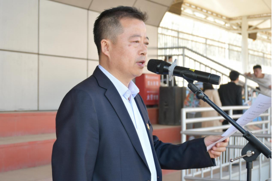 党总支书记高德胜代表学院致开幕词,高书记在致辞中,肯定了学院全体师生为筹备本次运动会付出的辛勤劳动,号召全体运动员、裁判员在本次学院运动会中发扬各民族团结、互助、友爱的精神并预祝本次学院运动会圆满成功。