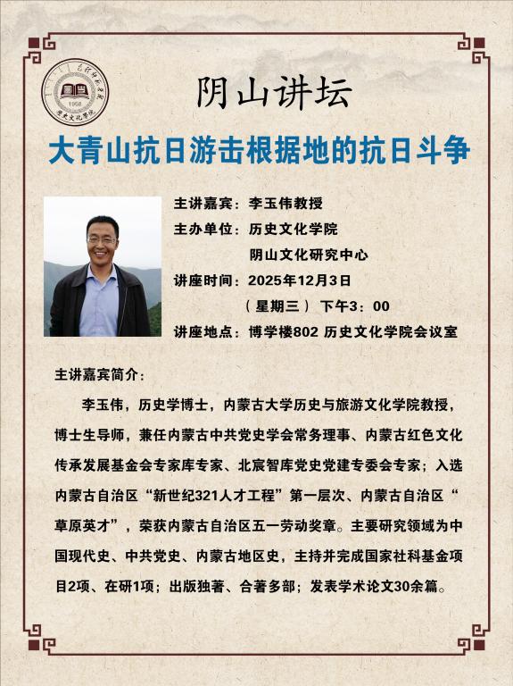 阴山讲坛:大青山抗日游击根据地的抗日斗争